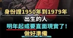 身份證1950年到1979年出生的人 明年起或要面對現實了!!! 做好準備