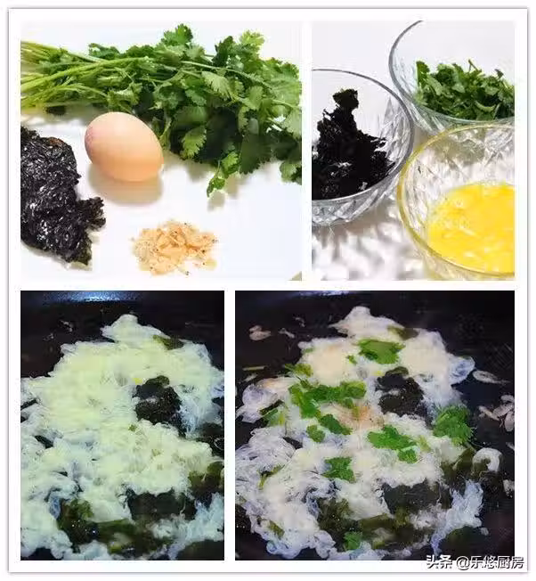 第三步:鍋中倒入適量的水,再放入一點點鹽。水燒開後將紫菜放到鍋中煮開,然後將蛋液緩緩的倒入鍋中。(不要攪動,蛋液隨著水煮開,會慢慢的飄起來)