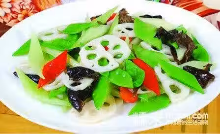 荷蘭豆;蓮藕;山藥;黑木耳;胡蘿蔔;馬蹄;香芹;鹽;味精;蒜片