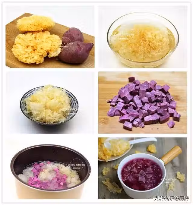 第五步:銀耳、紫薯、冰糖一起放入電飯鍋中,再倒入2000毫升清水。然後燉煮1個半小時左右就可以了。燉好後,晾涼後再喝,口感更好。
