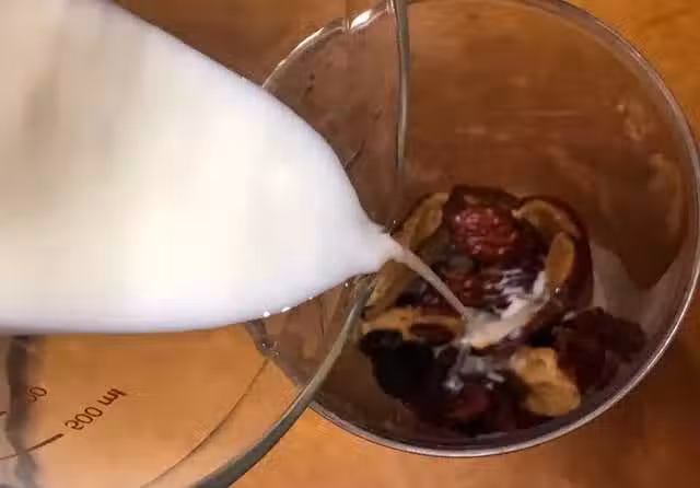 5、把2個雞蛋打入紅棗奶糊中,繼續攪打均勻。