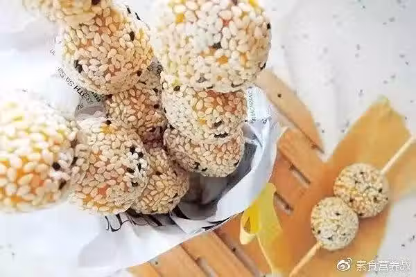 3. 烤盤上撒上黑芝麻,將小圓球粘上黑芝麻。