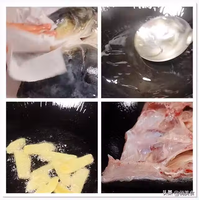 煎6-7分鐘,翻面,再煎3-4分鐘,大火倒較多的開水,燒開後撇去浮沫,燉5分鐘,魚頭燉熟,下豆腐,再燉3分鐘,加適量食用鹽、少許白糖,出鍋前撒上枸杞、蔥花。