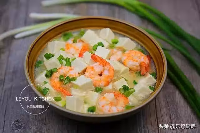 第一步:準備食材。豆腐1塊,鮮蝦200克,大蔥適量,姜適量,香蔥適量。