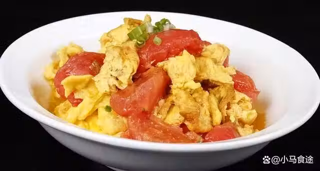 3.再起鍋燒油,下入蔥末爆香,下入西紅柿炒勻,調入鹽、少許白糖、少許胡椒粉、翻炒入味,下入雞蛋,翻炒均勻撒入蔥花,即可出鍋裝盤。