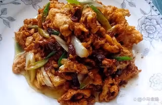 2.起鍋燒油,下入蔥片和黃醬小火炸香,下入提前炒好的雞蛋,調入少許白糖,充分翻炒均勻,即可出鍋裝盤。