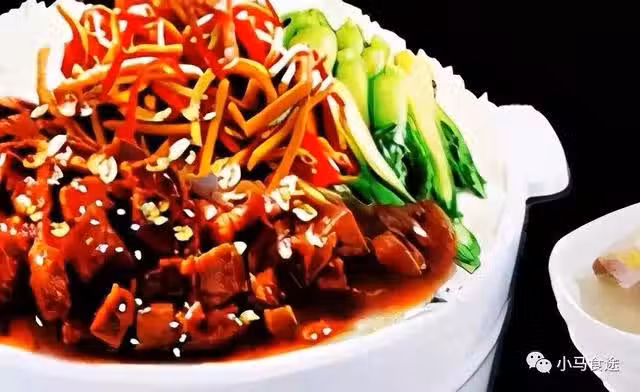 2.鍋內放點油,油熱放入剁椒、炒香下入豬皮,炒一炒放入清水燜一會,豬皮裡面烹點料酒,雞精,生抽,水分燜干放入青紅辣椒,炒香放入米飯,小火按散,豬皮炒香,撒入蔥花、胡椒粉準備起鍋即可裝盤。這款回鍋豬皮炒飯你敢吃嗎?