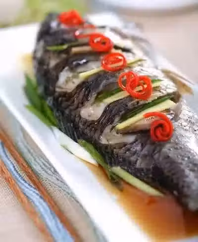 原料:活鯉魚1條、鹽1茶匙、胡椒粉1/2茶匙、料酒2湯匙、薑4片、幹辣椒1個、蒸魚豉油2湯匙、香蔥適量。