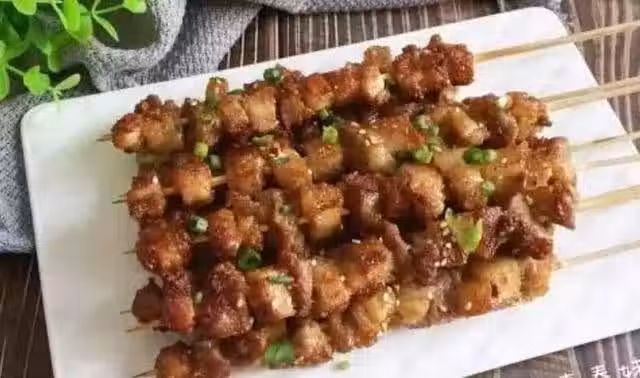五花肉串,燒烤里的五花肉略帶焦香,油香,肉香,三香合一。五花肉經過腌制,撒料,比單純的瘦肉烤的還要香,而且肉不柴,不塞牙,非常接地氣的下酒小菜。