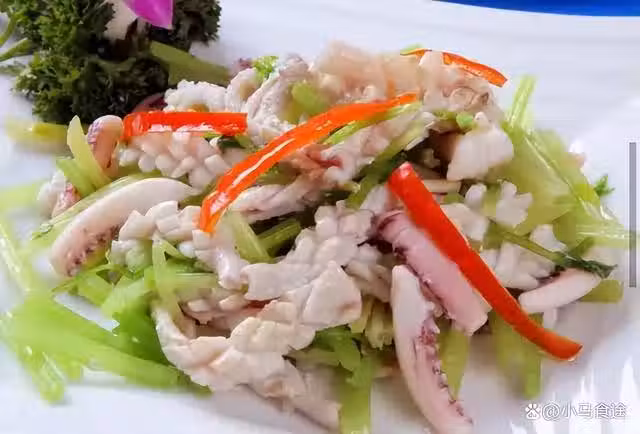 芹菜炒魷魚,這是一道傳統名菜,魷魚切成麥穗花刀,這樣做炒出來好看,更上檔次,嫌麻煩的話,可以直接切成條條,這道菜看似簡單,但要想做好吃,還是頗有講究的,用下面這個方法做好了家人搶著吃。