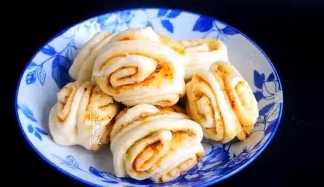3.麵糰放在案板上擀開,刷上炸好的油辣子,捲起來,切段,逐一扭成花捲,放入冷水鍋中,開大火蒸十五分鐘即可出鍋。