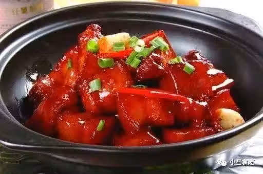 材料:豬帶皮五花肉、姜蔥、八角、桂皮、香葉、花椒、鹽、料酒、糖色、紅曲米、味精、鮮湯、水豆粉、干辣椒。