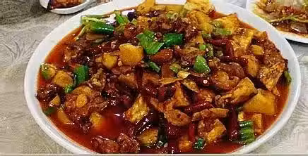 2、熱鍋上油,放八角,桂皮,香葉,幹辣椒,花椒,蔥薑片煸香;