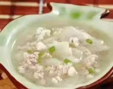 材料:冬瓜一斤、薏仁三兩、瘦豬肉六兩、陳皮一小塊、生薑一片。
