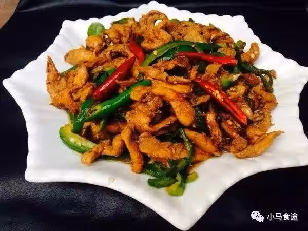 材料:雞胸肉、青尖椒、紅尖椒、泡椒段、蒜末、鹽。