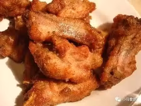 2.七成油溫下排骨炸金黃撈出瀝油,撒椒鹽翻炒均勻出鍋即可。