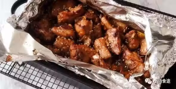 4.凈鍋上火滑鍋留油,將壓好的排骨回鍋收汁勾芡,擺在錫紙中,撒蔥花,再把錫紙周圍卷緊,放置燒熱的鐵板上即可。