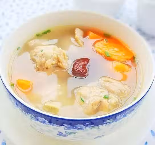 6、加入胡蘿蔔再煲30分鐘。出鍋前放適量鹽調味即可