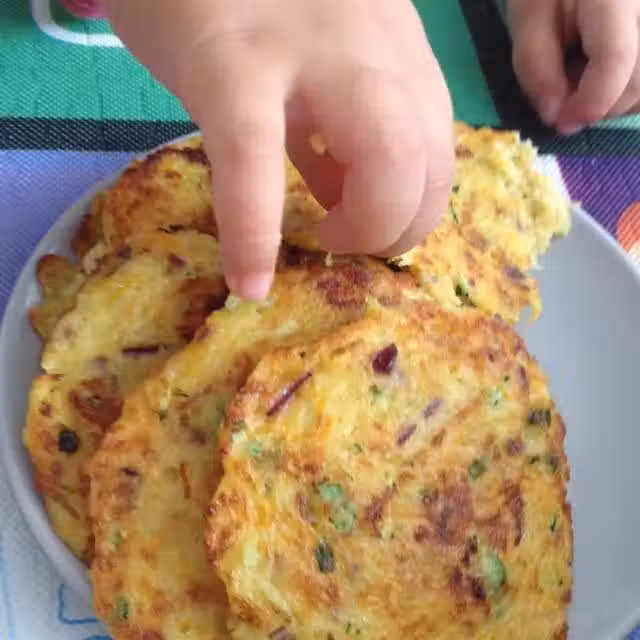 土豆一個;胡蘿蔔半根;洋蔥少許;黃瓜三分之一根;花生油少許;鹽少許;麵粉一湯勺;雞蛋一個