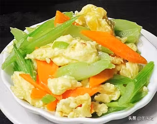 芹菜200克、雞蛋3個、胡蘿蔔半個、蔥花適量、鹽適量、糖1克、雞精1克、香油適量。