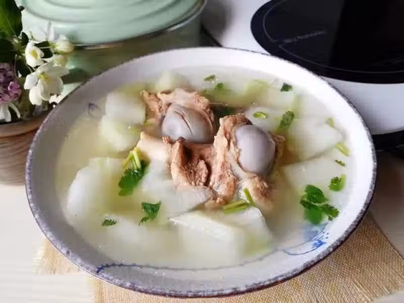 材料:冬瓜500克、筒骨2根、香菜1棵、姜1塊、料酒1湯匙、鹽適量、