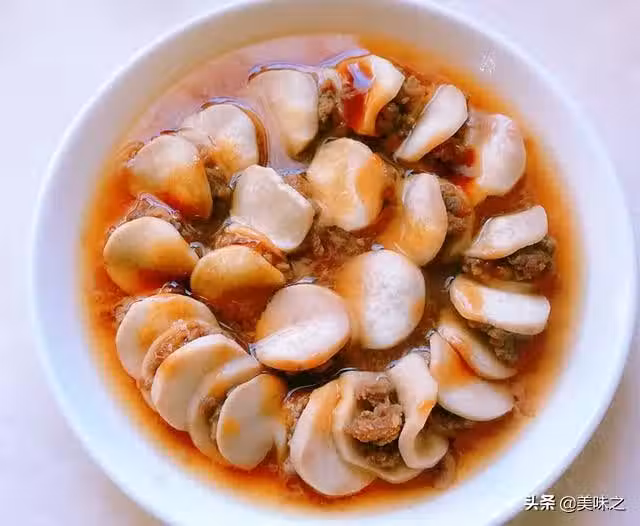 1、牛肉剁肉末,雞腿菇去頭尾。
