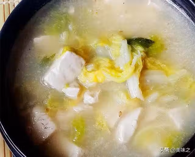 白菜100克、豆腐1/2塊、骨頭湯500克、鹽2克、雞精3克。