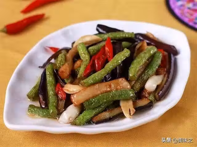 1、茄子洗凈切成長條狀,豆角洗凈摘掉老筋切成長閱8厘米左右的段,紅辣椒切小段,大蒜切片。