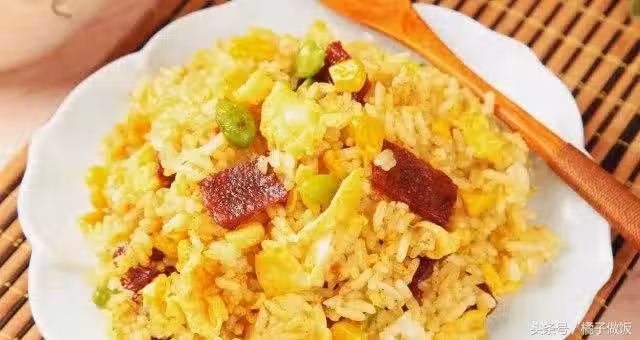 9 鍋中續油,倒入汆好的青豆和玉米粒。