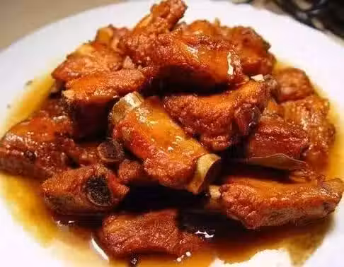 5、排骨軟爛後,轉大火將湯汁全部收干,同時翻炒。出鍋前淋入香醋拌勻即可。