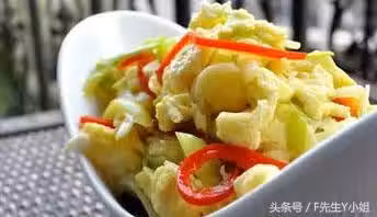 2、將韭黃、紅椒洗凈瀝水。韭黃切段,紅椒切絲備用。鍋燒熱後注油,大火將紅椒絲煸香,下韭黃翻炒,調入適量精鹽炒勻;下七成熟雞蛋塊入鍋同炒,加入少許醬油調味,顛鍋翻炒幾下起鍋裝盤。