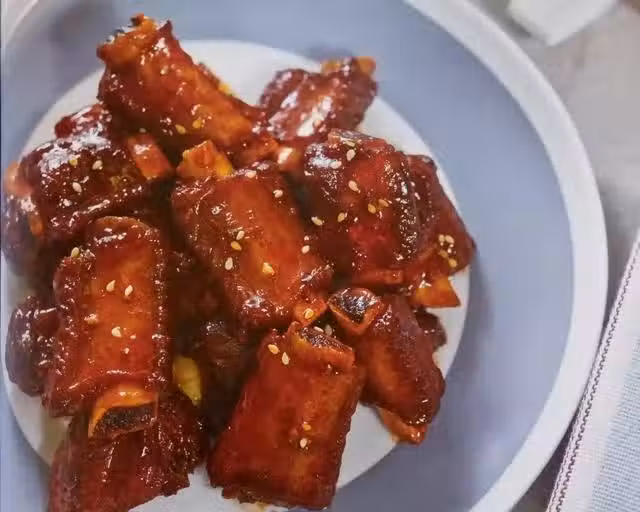 糖醋排骨,按照用量口味稍重,可以按比例減少