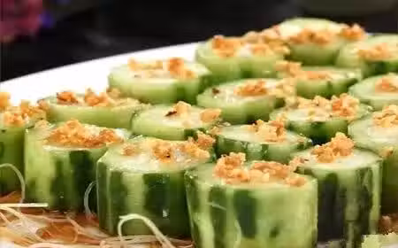 1.把絲瓜皮刮干淨,切好平放盤裡。上面鋪滿蒜末,薑末,辣椒末