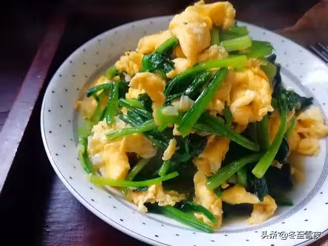 【菠菜炒雞蛋】所需材料:菠菜400克、雞蛋3個、油鹽適量、蔥1段、