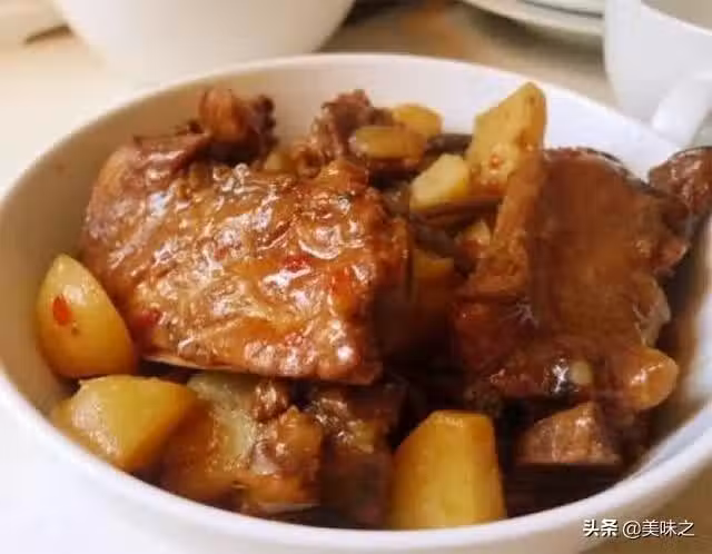9、加入土豆、茶樹菇,開鍋,繼續中火燉15-20分鐘。