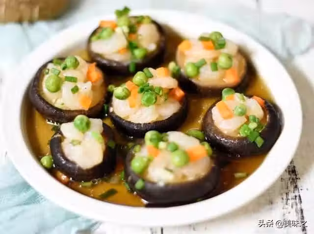 鮮香菇7朵、蝦仁1小碗、青豆10g、胡蘿蔔碎10g、蔥碎5g、玫瑰鹽3g、白鬍椒粉1g、食用油1小勺、料酒1小勺。