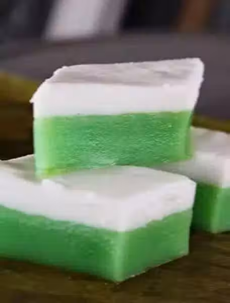 3、把稠了的粉漿倒在綠色層上,用中小火蒸約15-20分鐘至熟。