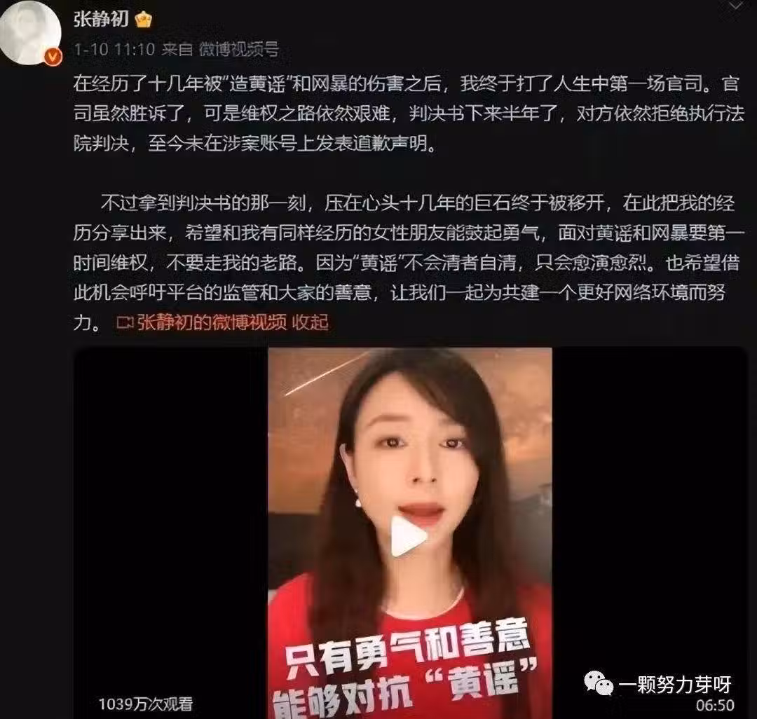 並且鼓勵和她有一樣經歷的女性,勇敢站出來為自己維權,面對黃謠和網絡暴力不要走她的老路。