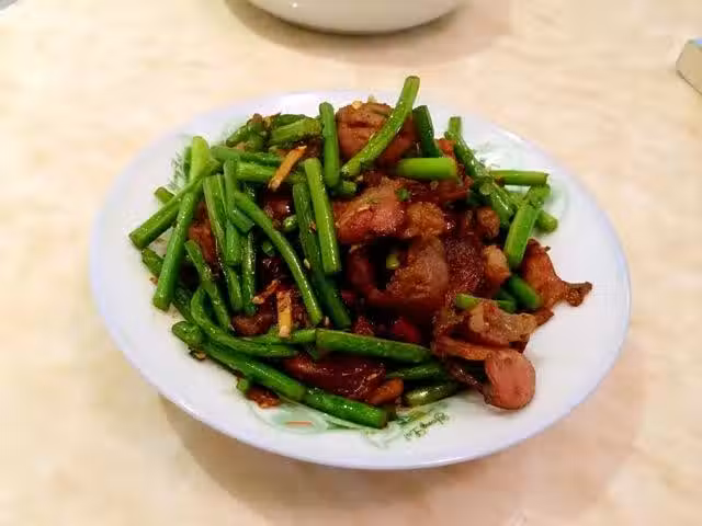 1.蒜苔洗凈,摘去尖部,切小段。