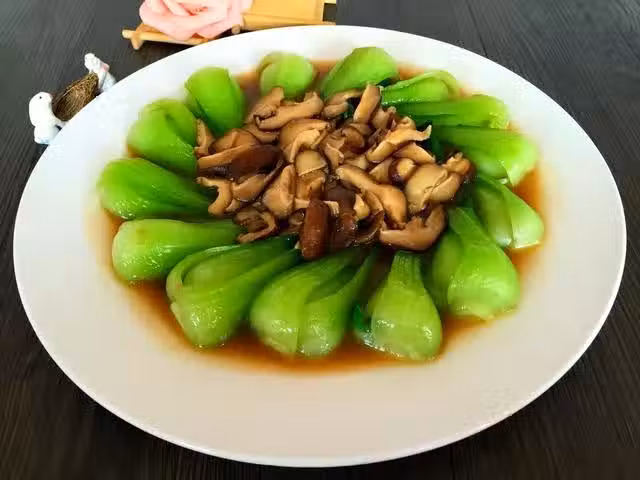 6.將香菇放在油菜中間