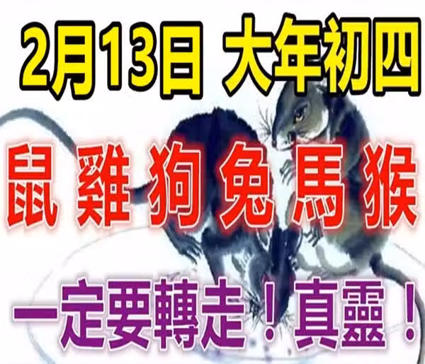 2月13日大年初四(鼠、雞、狗、兔、馬、猴)必轉