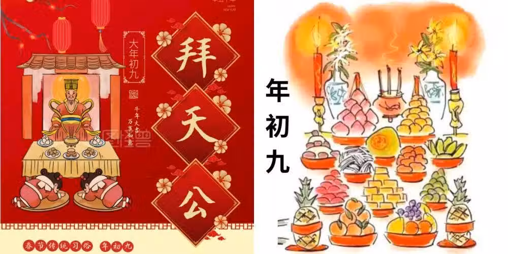 正月初九為玉皇上帝的誕辰,在中國民俗中,正月初九為玉皇聖誕,即所謂的「天公誕」。在中國古代神話傳說中,玉皇大帝是是乾道眾神之領袖。