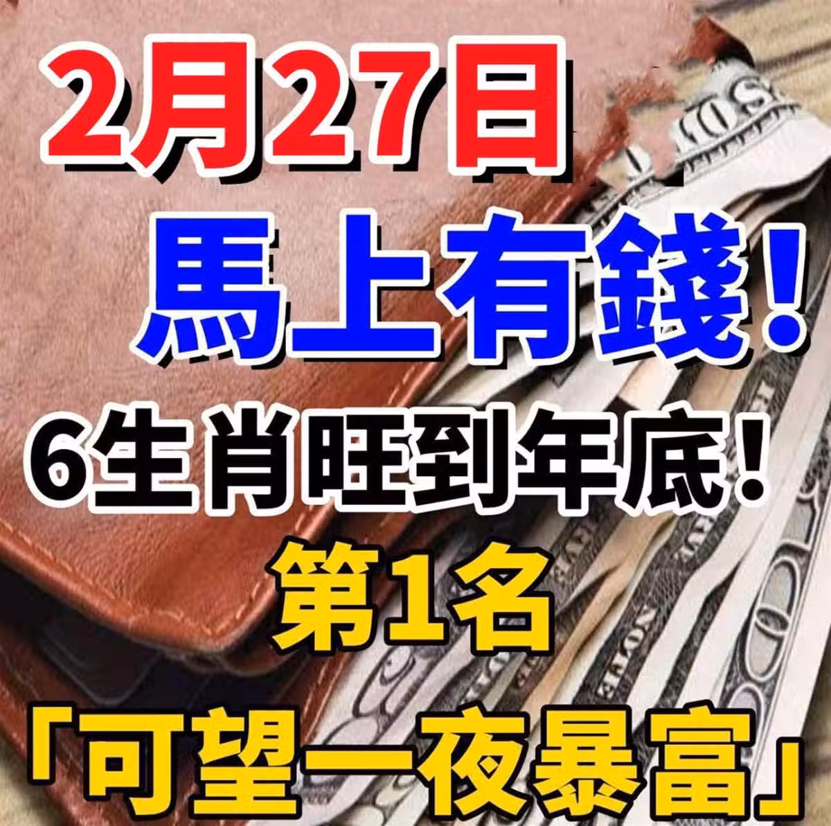 2月27日馬上有錢!6生肖旺到年底!第1名財運狂飆「可望一夜暴富」