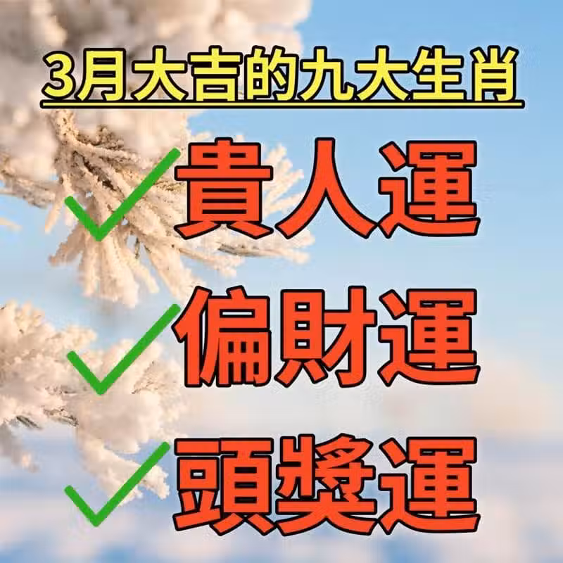 3月大吉的九大生肖:貴人運,偏財運,頭獎運快來接