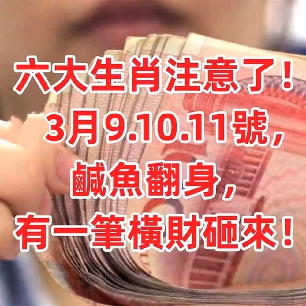 3月9.10.11號,鹹魚翻身,有一筆橫財砸來的生肖!