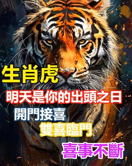 生肖虎:明天是你的出頭之日,開門接喜,雙喜臨門,喜事不斷,趕緊轉