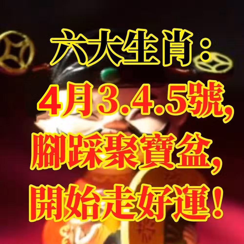 4月3.4.5號開始,腳踩聚寶盆的6生肖,開始走好運!