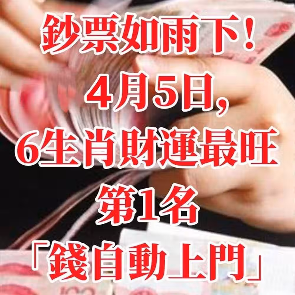 鈔票如雨下!4月5日,6生肖財運最旺,第1名「錢自動上門」