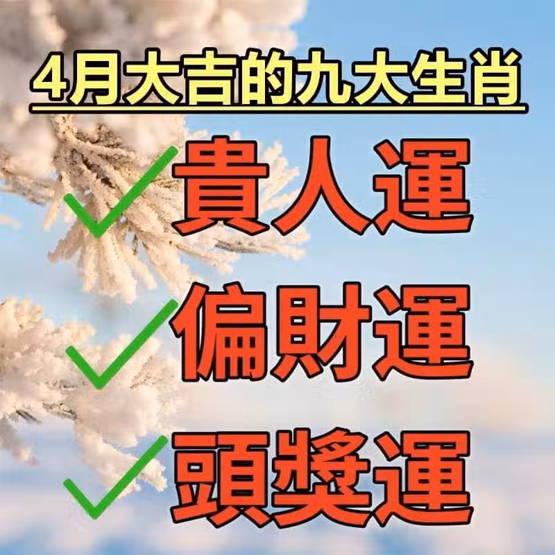 4月大吉的九大生肖:貴人運,偏財運,頭獎運
