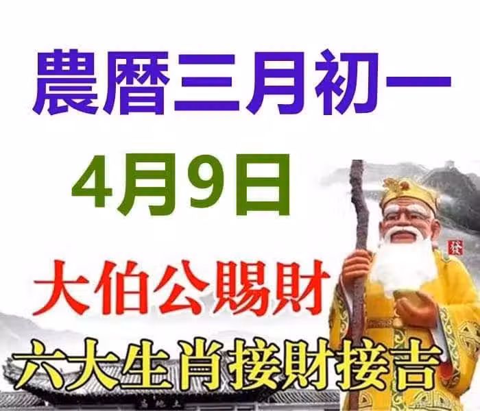 農暦三月初一(4月9日)大伯公賜財,六大生肖接財接吉